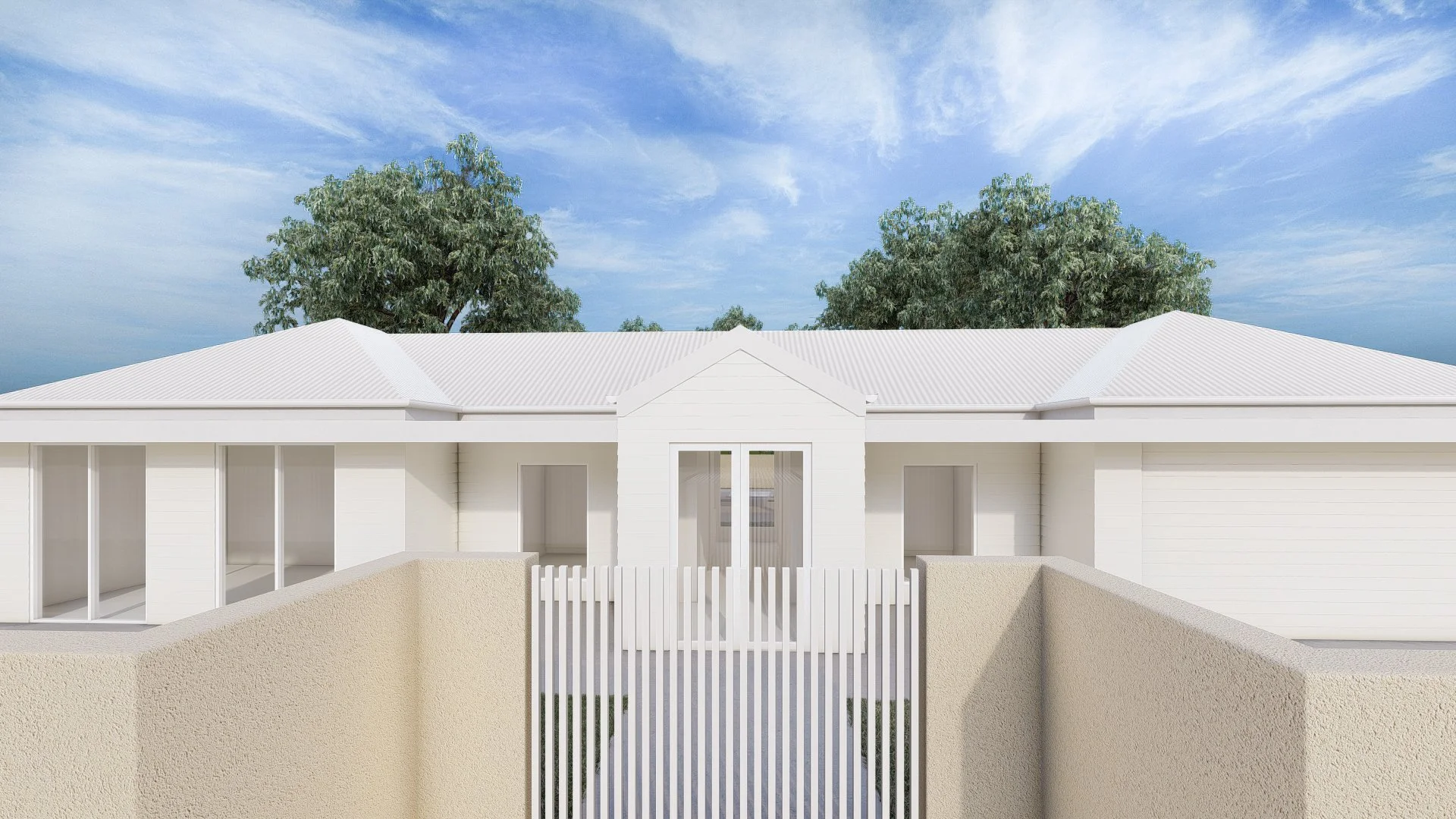 Lower Mitcham residence is nestled into a well-established inner suburb of Adelaide, with it’s eastern edge opening onto the Adelaide Foothills. The front façade consists of a classic white weatherboard material palette, paired with a prominent natural stone fence, grounding light and weighted materiality. The residence is oriented to optimize the northern aspect of the allotment, along with smart spatial planning of a curated central courtyard.